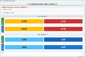 LINE配信といえば、地図上のボタンを数クリックするだけでメール配信ができる、ちゅん氏特製のHTMLアプリがあります。現在は、この送信先に公式LINEの外部配信用メールアドレスを追加することで、そのままLINEへ配信できる仕組みになっています。このシステムに警報・注意報用の配信ボタンを追加することも考えましたが、ちゅん氏が数日かけて作り上げただけあって中身はかなり複雑。HTML初心者の私がこれを理解して手を入れるのは、正直ちょっとハードルが高そうです。