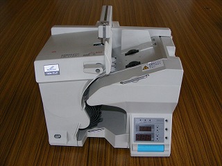 さて、開票所には2ラインに2台づつ合計4台のEL21がセットされます。誤りがないように、同じ票束の枚数を2台の計数機によって数える体制となっています。具体的には、1台目のEL21には20~100票で自動停止する様に設定をしておきます。(この票数は選挙により異なります)その計測した票束を、2台目のEL21によってもう一度計測し、間違いが無ければ次の行程へ廻されていきます。まさに開票所でEL21は、重要な戦力となっています。