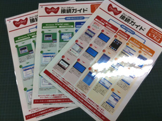 そして、フリースポットの存在が徐々に浸透してきたのか、当室に寄せられるお問い合わせの件数がこのところ増加傾向にあります。一番多いのは施設の担当者からで「施設に見えられたお客さんに利用方法を尋ねられたがどうしていいかわからない」というもの。機器は全て当室が設置したものなので、その施設の担当者が分からなくて当然なのですが、そんなことは利用者にとっては全く関係のないこちら側の事情です。利用者の皆さんにも、また担当者の皆さんにもこれ以上ご迷惑もかけられないということで、急遽「接続設定ガイド」を作成することにしました。