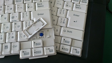 そんな訳で、ちゅんがPCを取りに行ったのだが、PCを抱え困った顔をして戻ってきた。どうしたのかな?それは、窓七化するPCのキーボート(以下:鍵盤)の「Shift」キーが取れかかっているのです。よく見ると鍵盤裏の爪が折れています。かなり残念な状態です。話を聞けば、このPCの隣の席のPCも、鍵盤がおかしいらしい?何かのキーが戻ってこない?押ささったまま?どうなのそれって?聞いてきた話によると、PCが配備された当初(2日目?)から不調だったらしい。既に、購入後1年3ケ月が経過・・・あちゃー!!!保障切れたじゃん!更に更に、前の席のPCも「F10」キーが壊れているらしい。これは、中身のパンタグラフが破損しています。なんなんだ、このエリアは!!何か鍵盤に良くない磁場か何かがあるのだろうか?