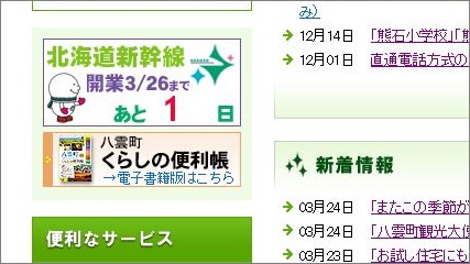 町ホームページに掲載している新幹線バナーが「あと1日」となっています。明日は・・・あと0日?明日に備え、ウェブサイト内新幹線関連コンテンツの「開業予定」表記を「開業しました」に変更する指示も出しました。明日は早いので、今晩は早寝をしなければ?!