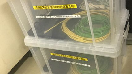 とにかく必要と思われるものをどっさり詰め込みましたが、その中に「ノートPC」も入れておきました。これに頼るような事態は絶対に起きてほしくはありませんが、万に一つ、庁舎が倒壊するような大災害が起きた場合、すぐに起動できるPCも必要だろうという備えです。