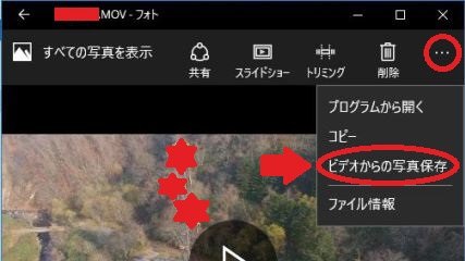 標準ソフトウェアで動画ファイルから画像ファイルへ。