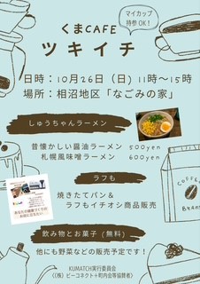 今週末は、毎月恒例の「くまcafeツキイチ」です。 今月は相沼地区にある「なごみの家」での開催です。