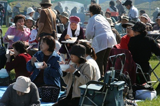 ゲームの他にも食品奉仕コーナーが人気で、サケのチャンチャン焼き300食、サケ鍋150食が無料提供されました。サケのチャンチャン焼きは、地元漁業者が自ら豪快に調理。まさに「浜の味」をみなさん堪能していました。