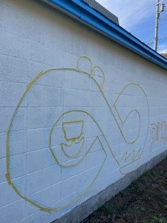 まずは 壁のロゴから書き始めました。