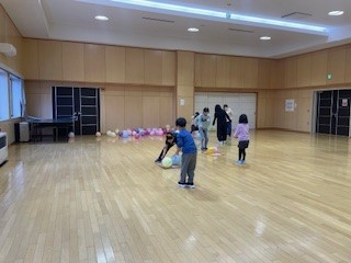 ☆そりに乗って軽やかに~!(段ボールのソリに風船を乗せて運ぶゲーム)