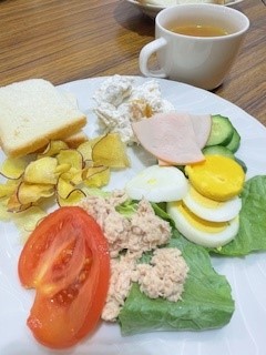 午前中は、お昼ご飯に食べるサンドイッチバイキングの パンにはさむ具材作りを みんなでしました。