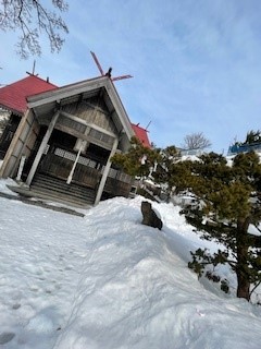 今年は、道路わきの山盛りになっている雪山がとても高くて 場所によっては歩道から道を挟んだ反対側が 見えないようなところもあります。