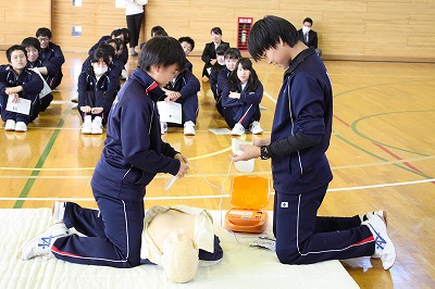 避難訓練のあとは、AEDの使い方の講習会がありました。