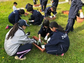 放課後のボランティア活動として花いっぱい運動作業が行われました。