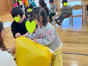 保育士からのプレゼント「箱の中身は何かな?」がスタート。