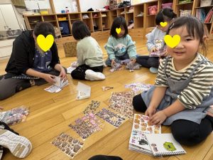 子ども達が日程を決め、保護者に連絡をして、その日だけ「自分のシール帳」を持って来て、お友達とシール交換をしたり、見せ合ったりできる日。