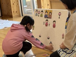 完成させたら、本物のひな飾りを見ながら答え合わせしました。
