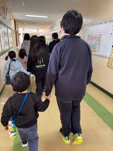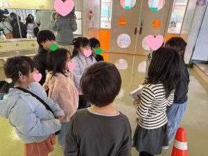 休み時間から玄関で待ってくれていた1・2年生💛この日は2名お休みで、4名で案内をしてくれました!