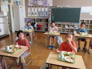 子どもたちは、お話を伺い、畑のトウモロコシがコロッケに使われていることや、実を上手に獲るコツなどを教えていただいた後、畑の中に実際に入ってたくさん収穫させていただきました。また、給食の際の試食時に新鮮なトウモロコシを口にして、「甘い!」とそのおいしさを味わったり、収穫したものをお土産にいただいたりして、大変喜んでいました。