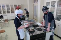 本日、1年生2~4時間目の家庭科の授業で、調理実習を行いました。コロナ禍でなかなか行えませんでしたが、ようやく行うことができました。メニューは生姜焼きです。ご飯、みそ汁、ほうれん草のおひたしも添えました。生徒たちは慣れないながらも一生懸命作りました。とてもおいしく出来上がりました。