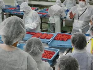 会社の方からお話を聞かせていただき、いよいよ「たらこ」製造の見学です。