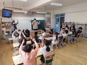 3年生は外国語活動。今年から始まった外国語も、みんな楽しく取り組めています。
