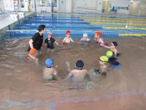 水中のフープを潜ったり泳いだりしながらくぐる練習です。どんどん上達していきます。