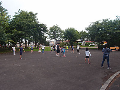 ここでも、地域のお父さんお母さんが一生懸命にラジオを用意して、体操会を行ってくれていました。