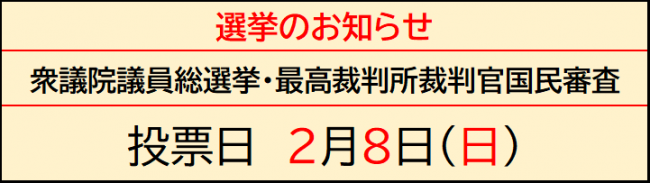 令和8年2月8日執行 衆議院議員総選挙及び最高裁判所裁判官国民審査のお知らせ