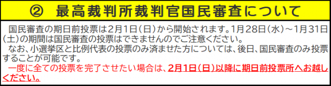 ※ 衆議院議員総選挙と最高裁判所裁判官国民審査で、それぞれ期日前投票期間が異なりますので、ご注意ください。
