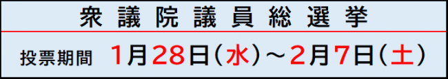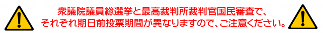 衆議院議員総選挙と最高裁判所裁判官国民審査で、それぞれ投票期間が異なりますので、ご注意ください。